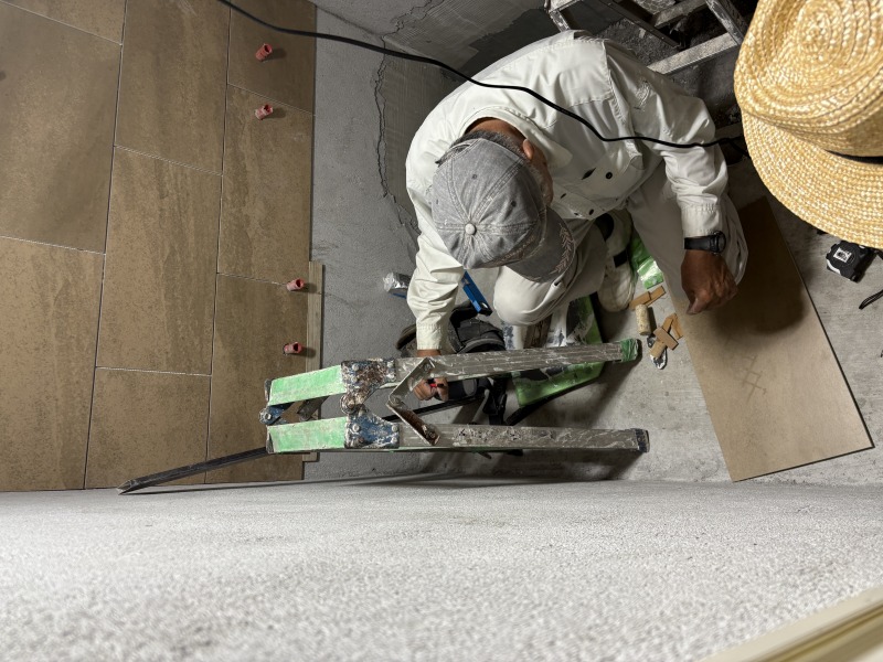 左官屋さんによりタイル貼りの工事をしてもらってます!
